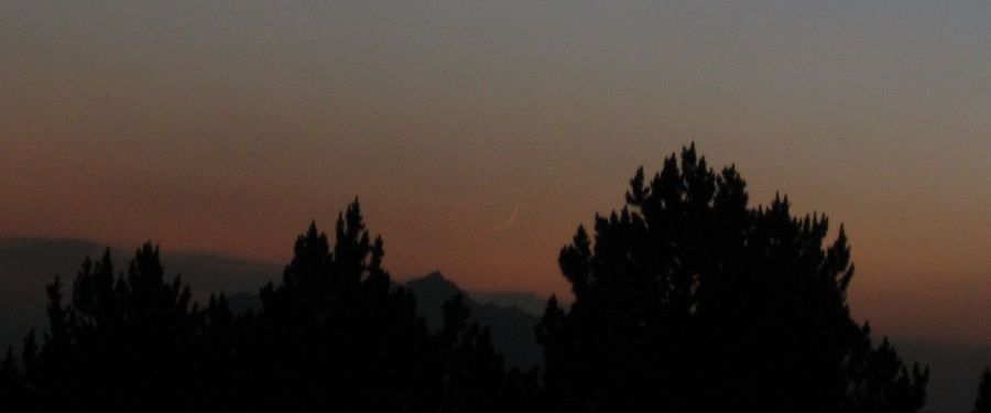 Croissant de lune aperçu juste après un passage nuageux (aux jumelles)