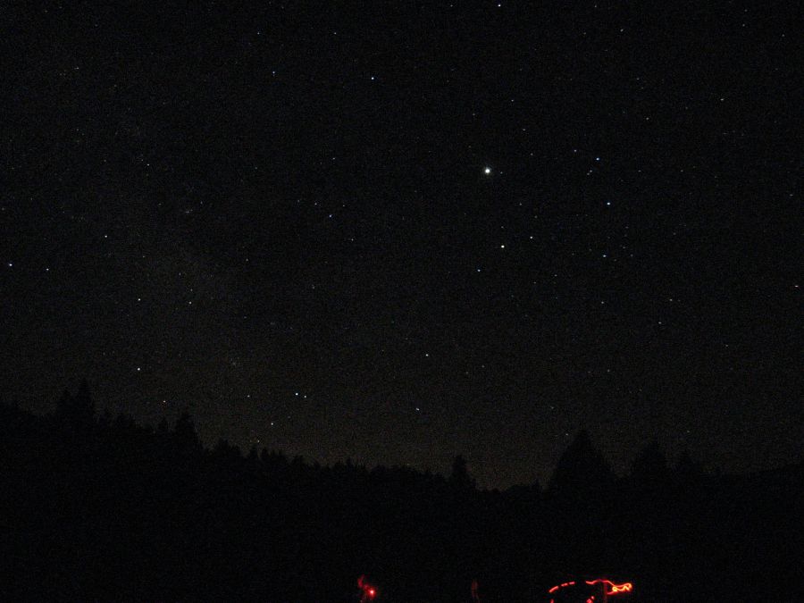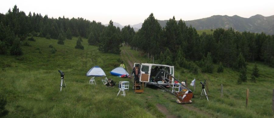 Partis vers 18h de Montredon labessonnié, nous sommes arrivés vers 20h30 au col de Pahières. Suivant le chemin habituel vers la plateforme de Loubats sans y aller, car le vent soufflait fort et... nous n'avons pu l'atteindre avec le fourgon chargé, nous avons trouvé un site bien protégé du vent avec un horizon sud toutefois assez bien dégagé et assez de place pour installer nos instruments.