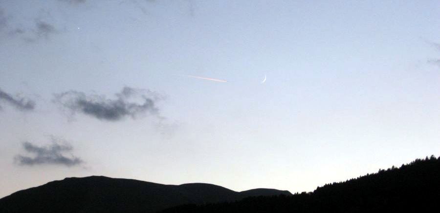 Vénus avion et croissant de Lune juste avant un passage nuageux