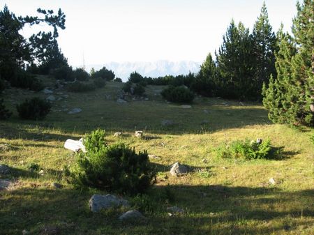 Puis installation à l'abri du vent de sud ouest (au cas ou, mais en fait nous n'avons pas eu de vent) sur le lieux dit "Pradell" entre Lles de Cerdanya et l'aire ci-dessus (au dessus du Cap del Rec)