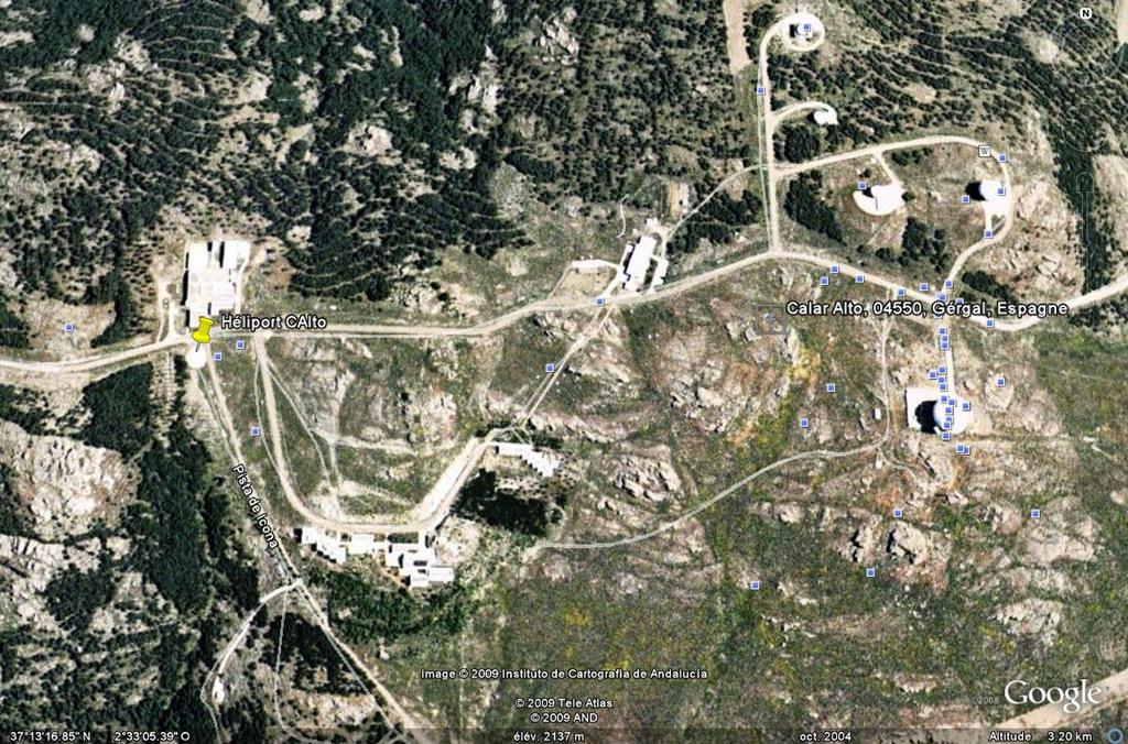 A droite les coupoles de l'observatoire , contre l'héliport les locaux techniques, vers le bas les locaux de vie et au centre les locaux techniques et administratifs . Aucune possibilité de visite pour un groupe de passionnés d'astronomie qui fait 2500 bornes pour observer ici ...dommage... on ne mélange pas torchons et serviettes... enfin ils acceptent que l'on observe dans le coin c'est déjà ça... personnellement si j'étais astronome dans un observatoire voyant débarquer un groupe d'amateurs venu de si loin j'irai au moins discuter un peu avec eux...simple ouverture d'esprit...mais, je ne suis pas astronome...