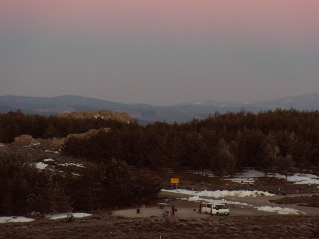 Installés à 21h, à 2km avant l'observatoire pour ne pas déranger, car nous arrivions un peu trop tard, de plus il y avait beaucoup de vent et nous étions là relativement abrités et à 2000m d'altitude.